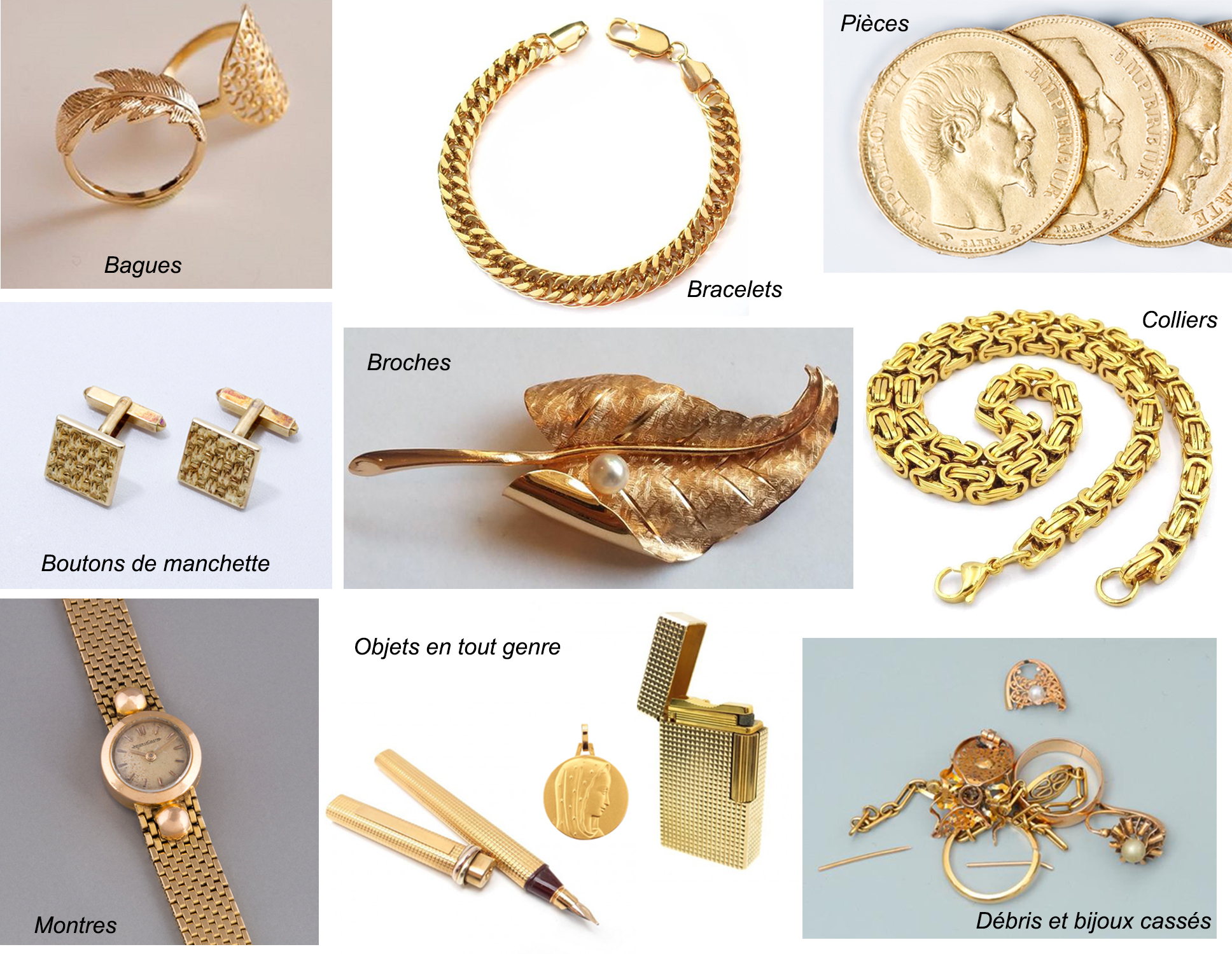 Quel que soit l’état de votre bijou, nous vous garantissons une estimation juste, transparente et sérieuse. Débris d’or, collier, gourmette, bague, or dentaire, divers objets en or… Nous rachetons tous vos articles en or, qu’ils soient cassés, anciens, démodés ou incomplets. Faites confiance à notre savoir-faire pour transformer vos anciens bijoux en une opportunité simple, sûre et avantageuse.