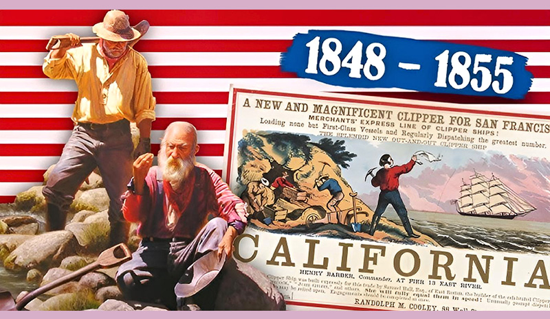 Exemples célèbres liés à la ruée vers l’or pendant la California Gold Rush. La ruée vers l’or en Californie (California gold rush) est une période d’environ sept ans (1848-1855) qui commence en janvier 1848 par suite de la découverte d’or à Sutter’s Mill, une scierie appartenant au Suisse Johann August Sutter, près de Coloma, dans l’actuel État de Californie (États-Unis). La nouvelle se répand rapidement et attire en Californie plus de 300 000 aventuriers, américains et étrangers.